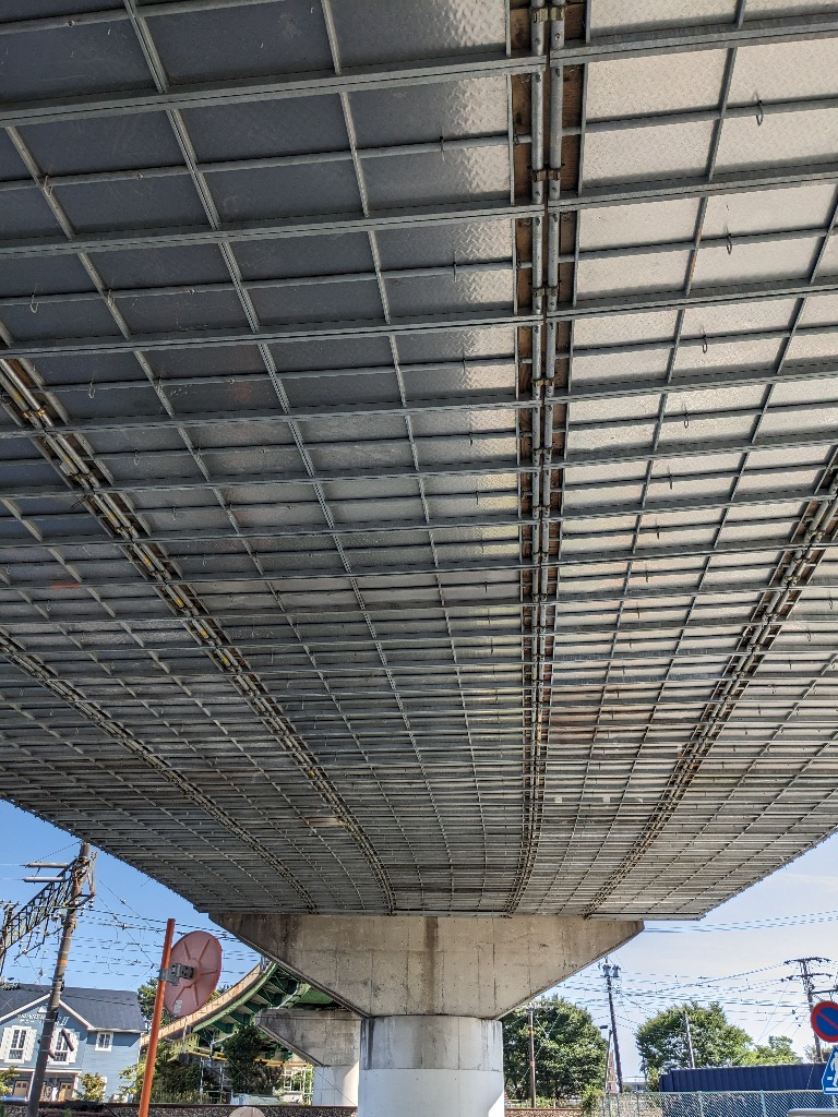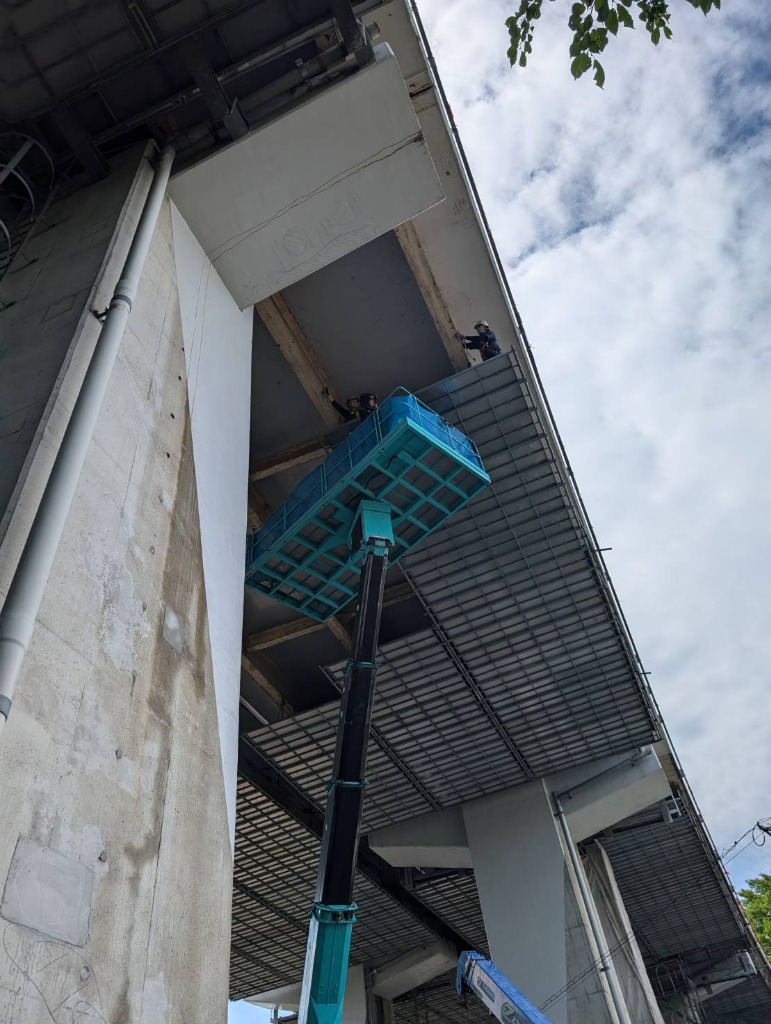 こちらは道路橋梁部分にて吊り足場を施工させて頂きました。
